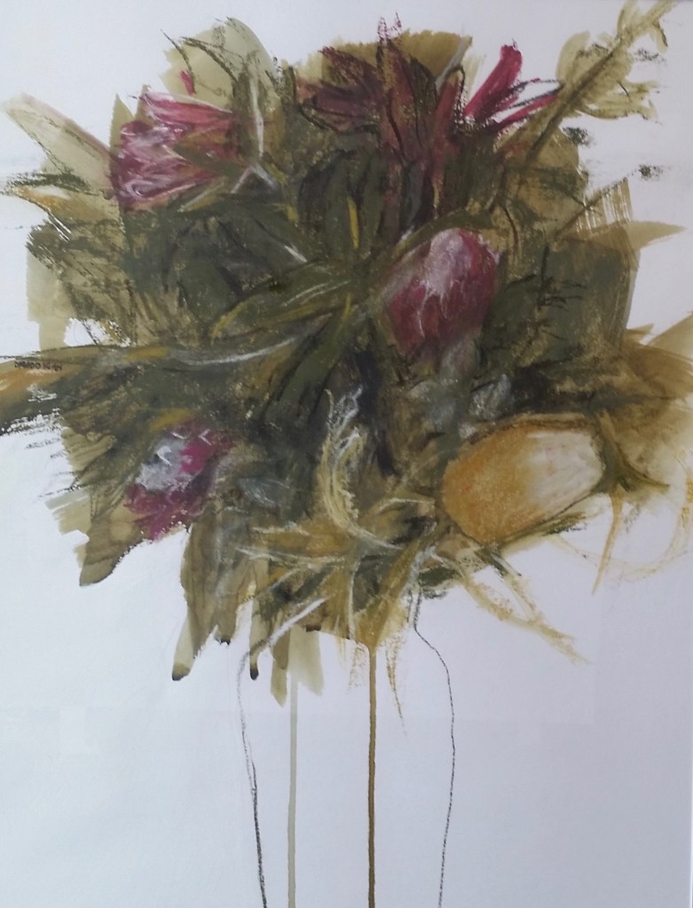 Blue cranes (illustrating poem ‘Poor poor country’)  Watercolour, charcoal, gouache and pastel  Framed 96 x 70 cm  SOLD
