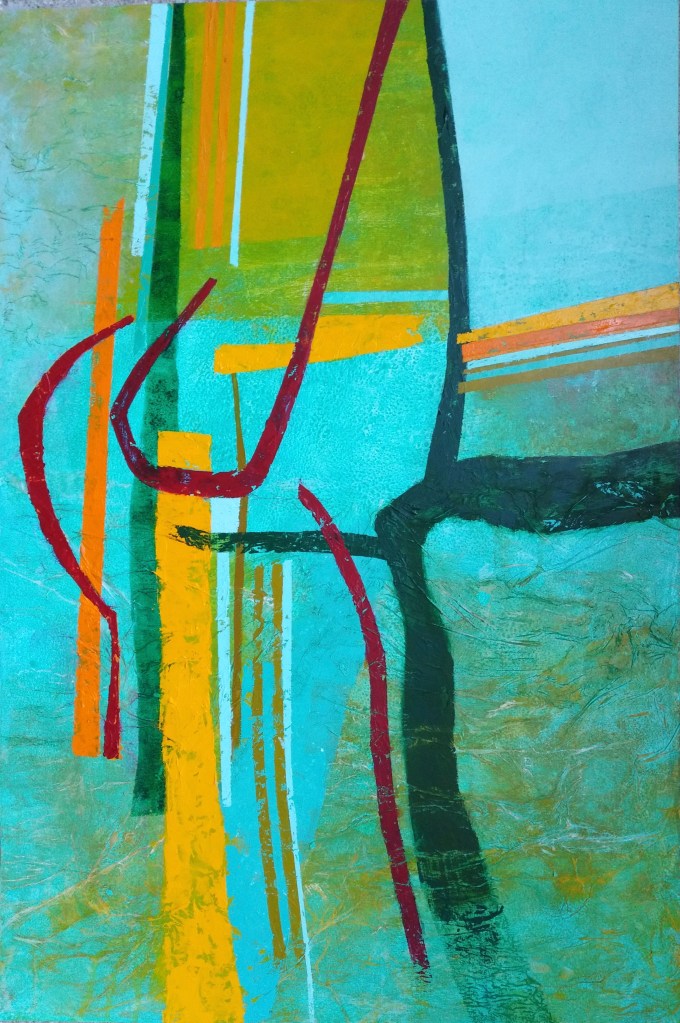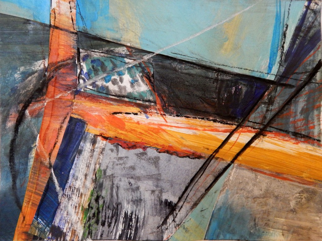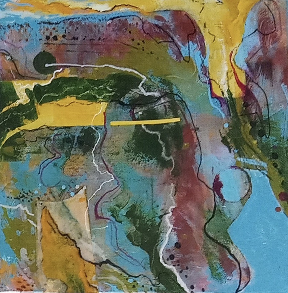 Towards the Horizon. Acrylic and collage on board 40x40cm