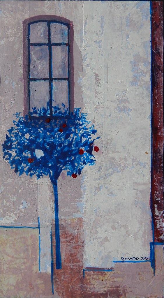 Autumn through the door 61 x 61cm. Acrylic and collage Stretched canvas SOLD