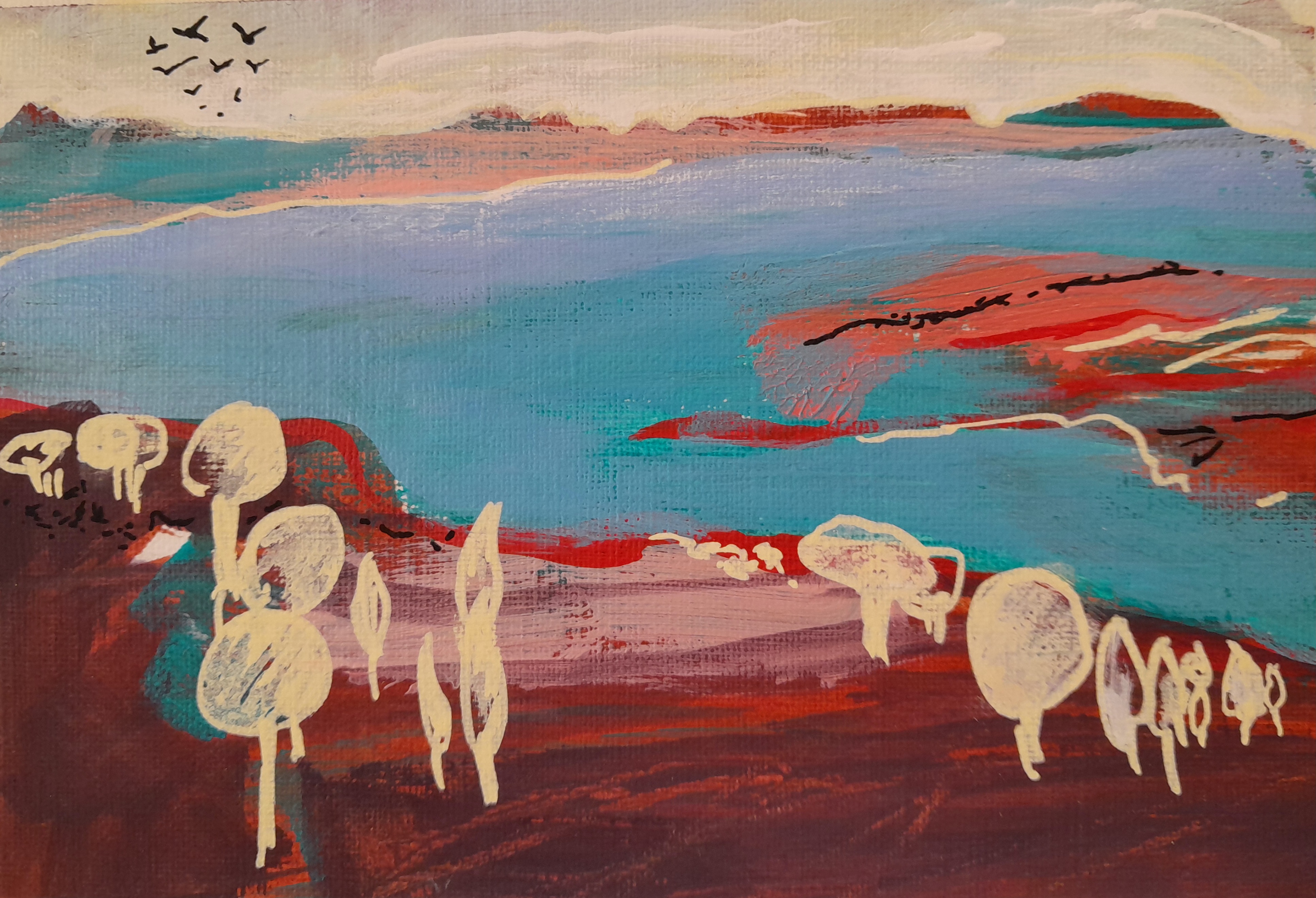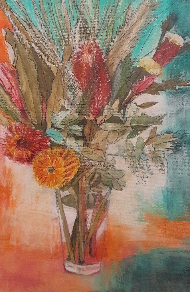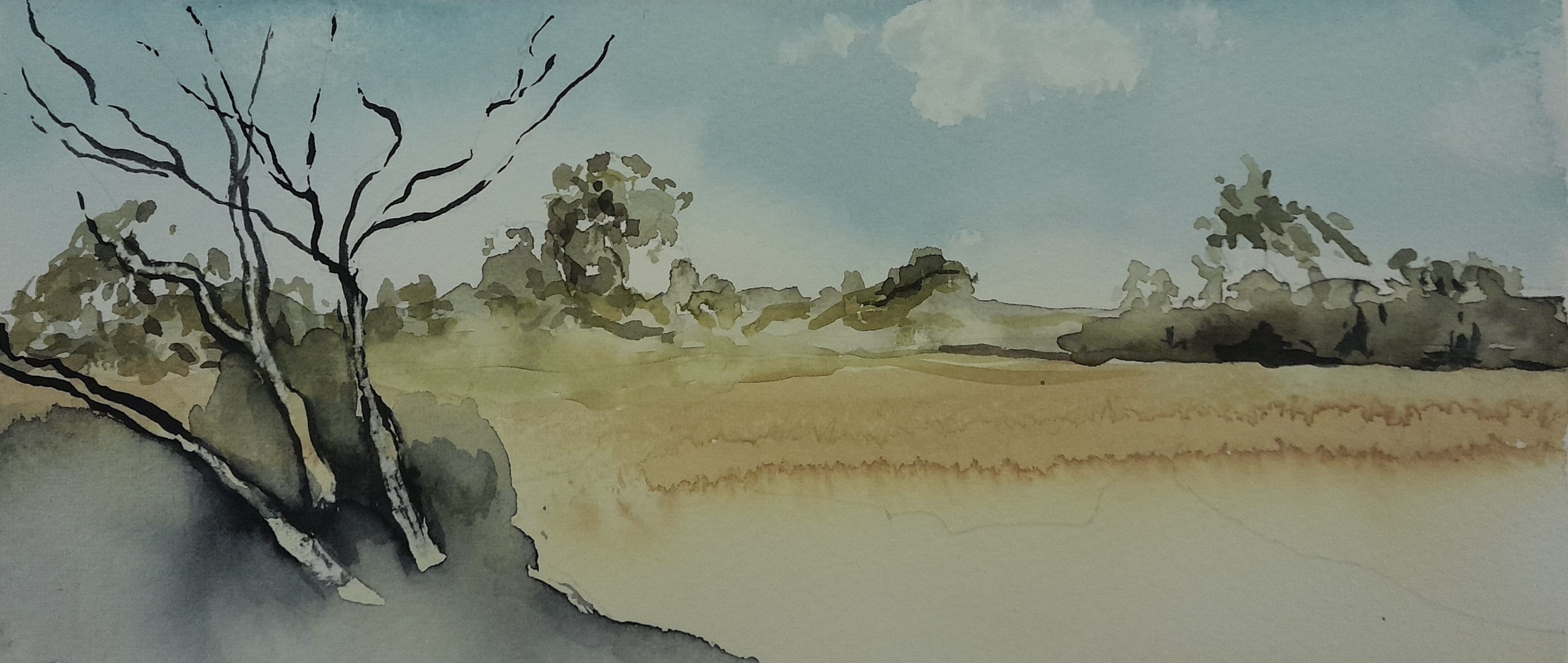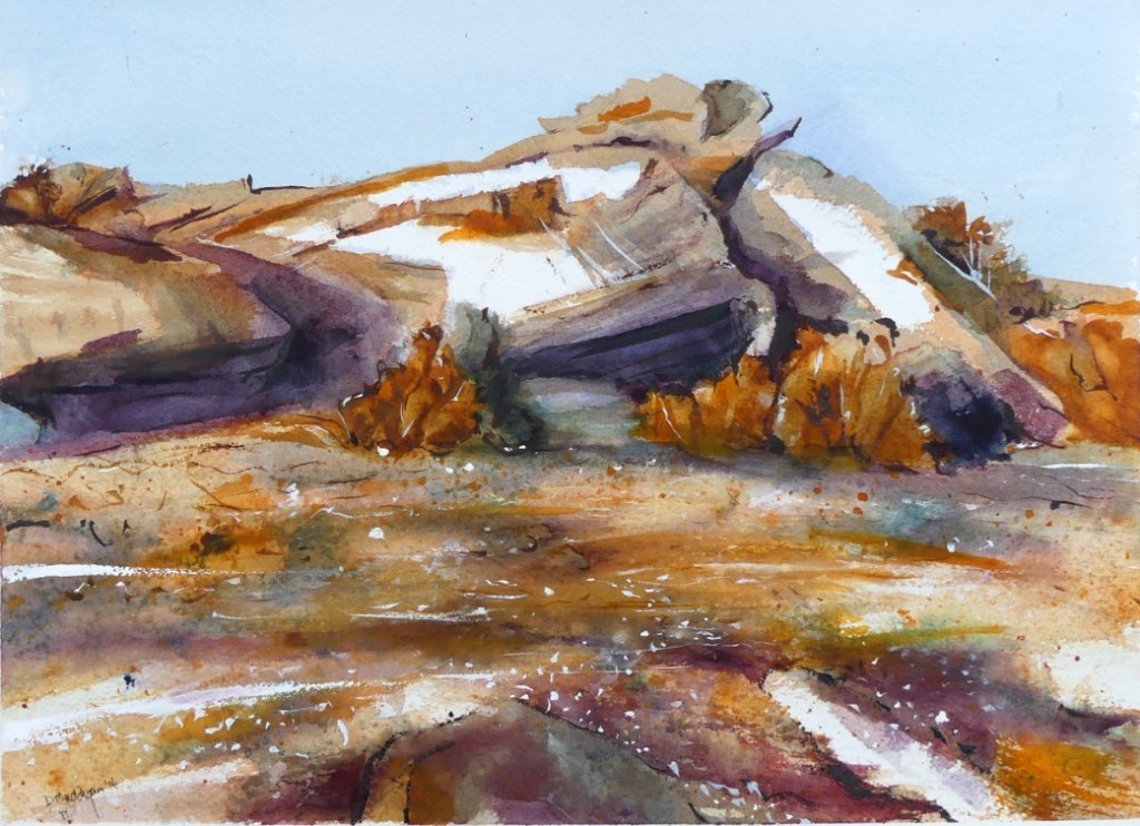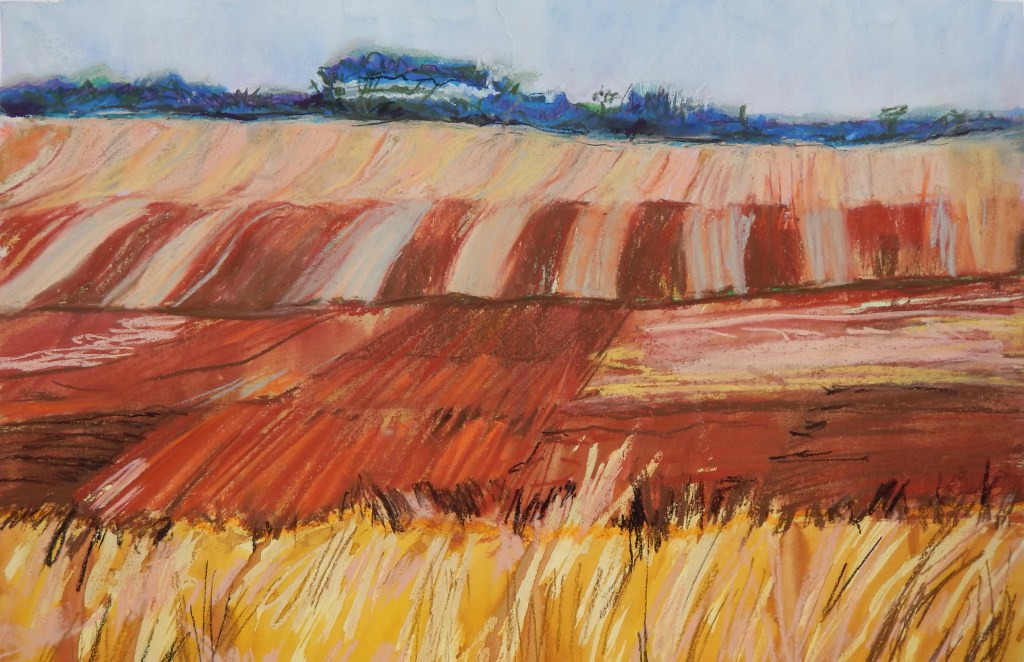 On the Eyre Highway WA Inktense and gouache Framed 42 x 52cm SOLD