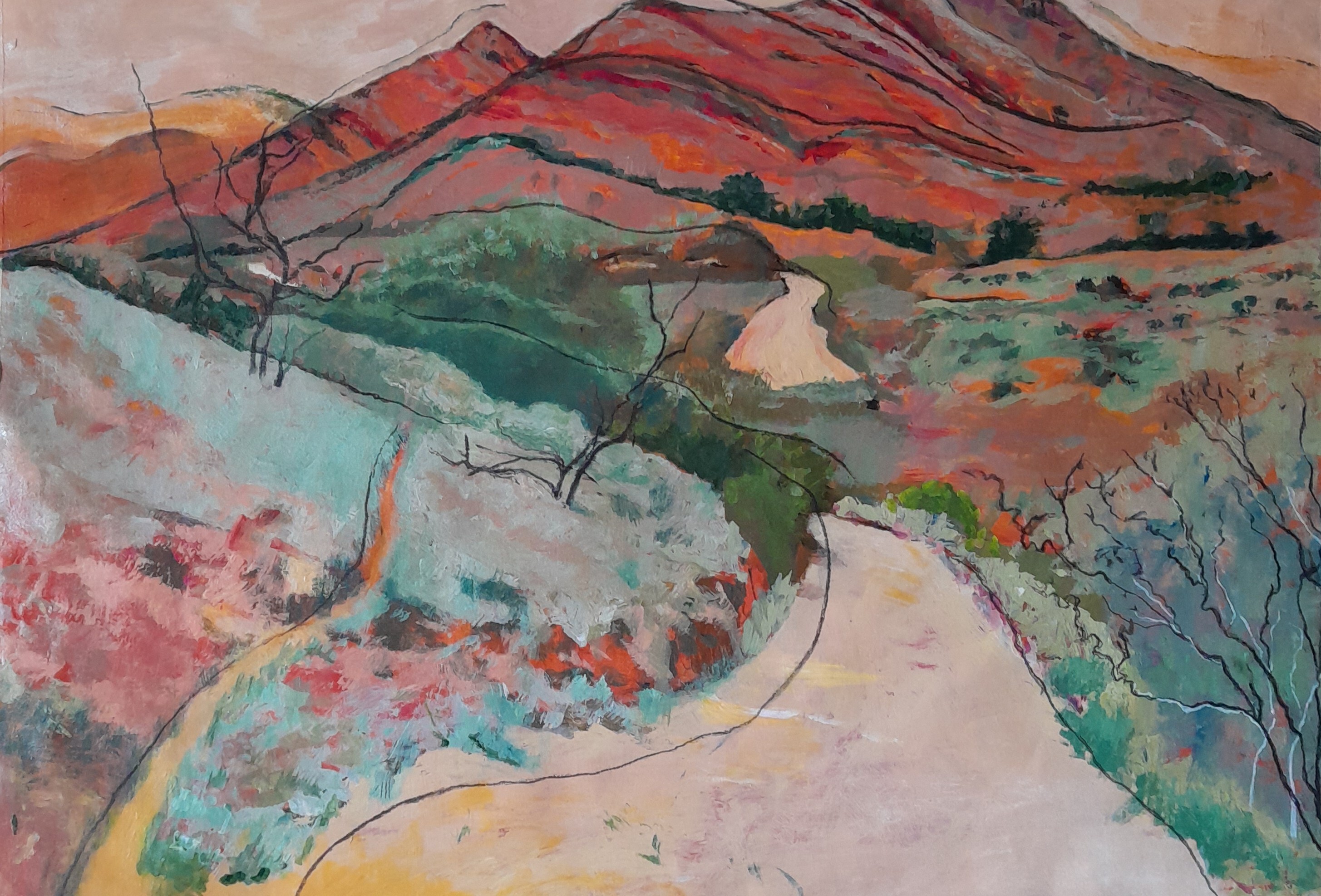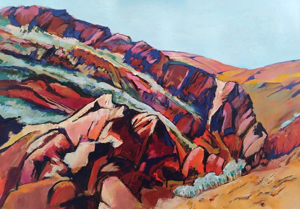 Ridgetop descent, Arkaroola Acrylic and charcoal 60 x 76cm Stretched canvas  SOLD