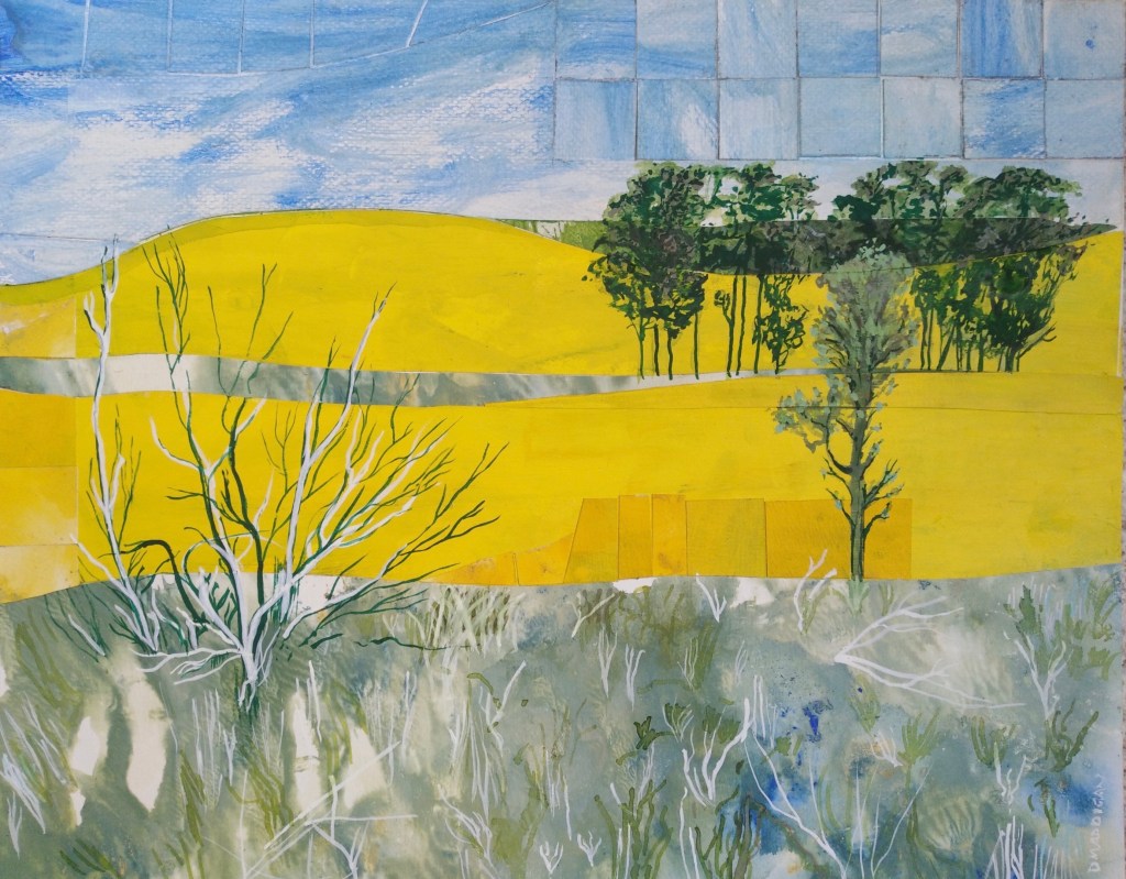 Where Gold the Sunbeams Shine Collage and acrylic 83×58 cm SOLD