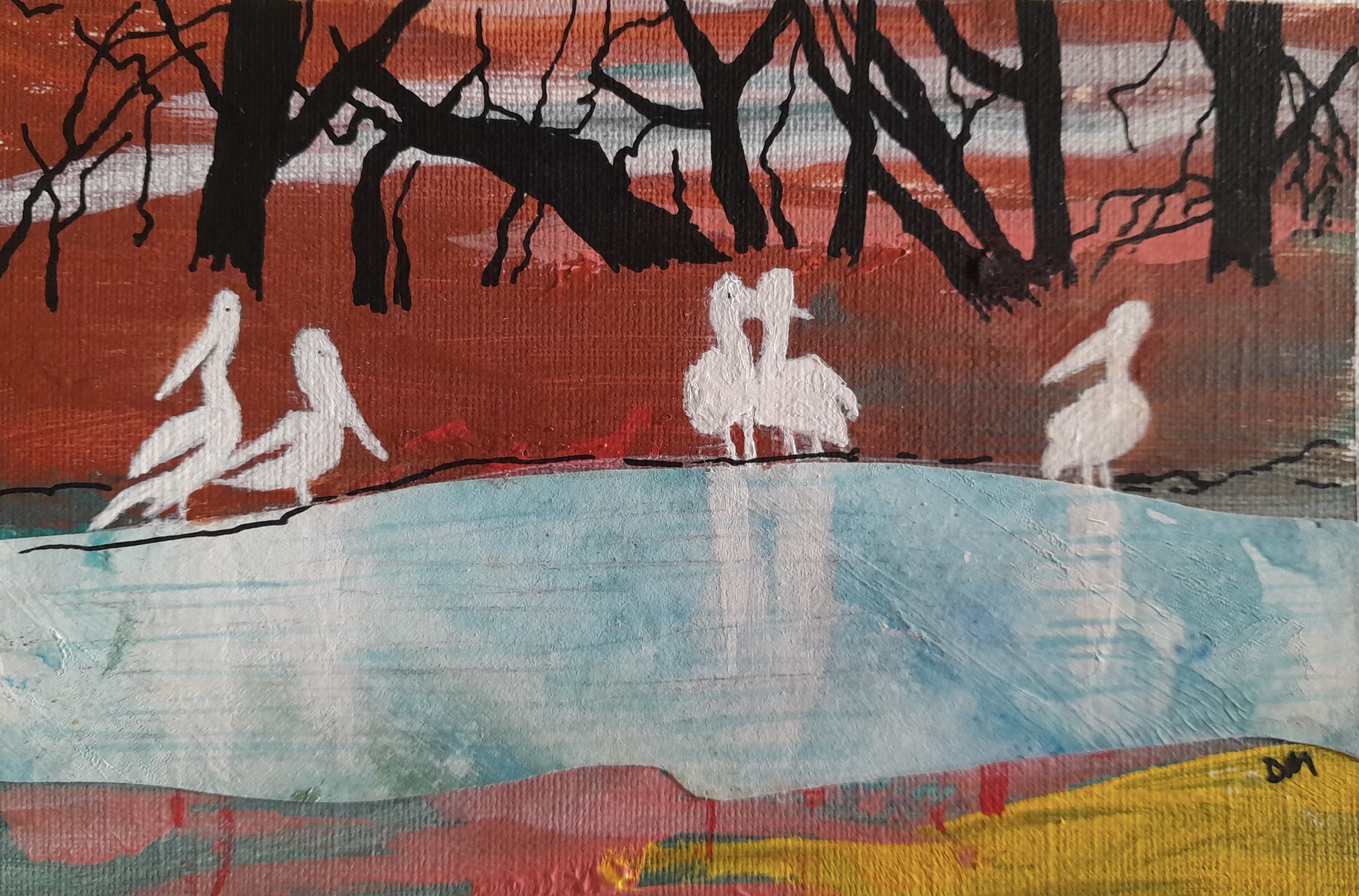 And then past the wetlands Acrylic and charcoal 63×63 cm Framed canvas $600