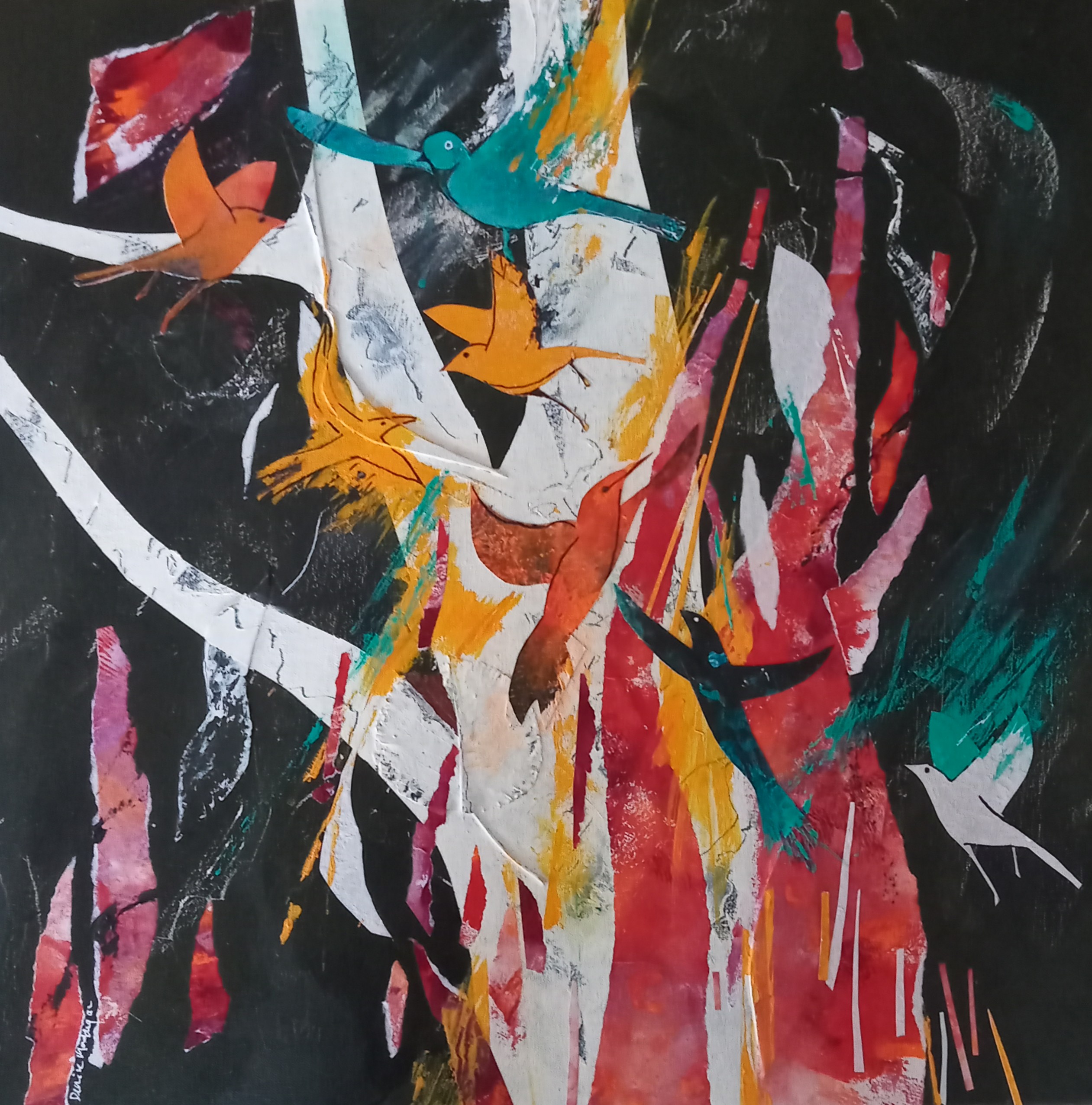 Lyrata Fire Collage and Acrylic 50×50 cm $600