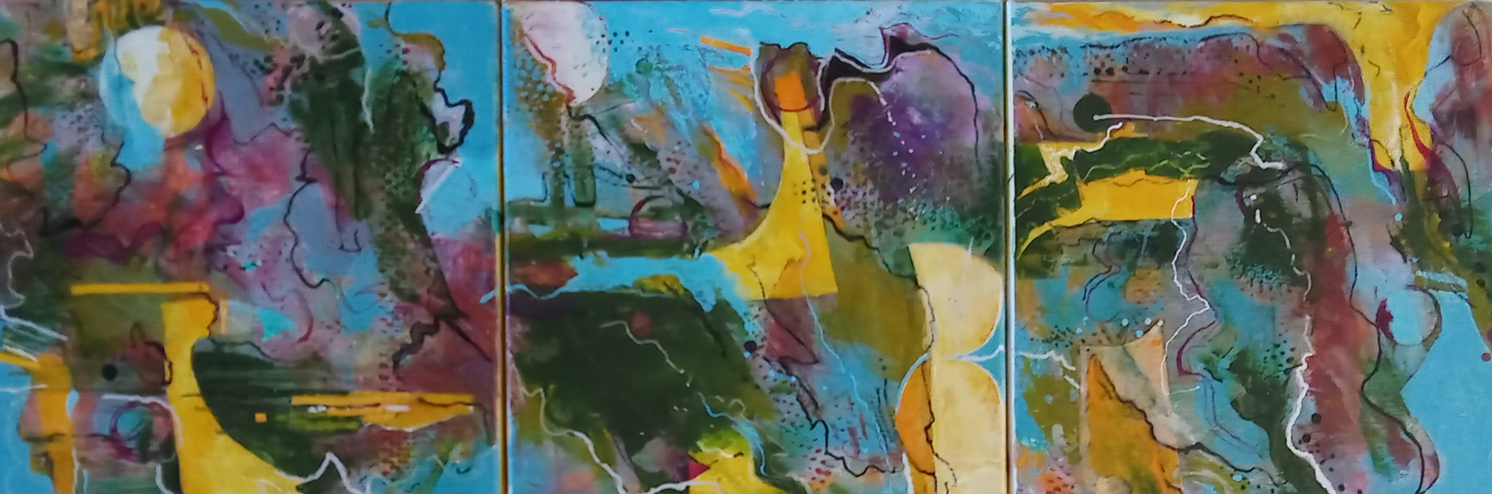 Off to the Moon, Triptych Acrylic 30 x 90 cm Stretched canvasses  $500