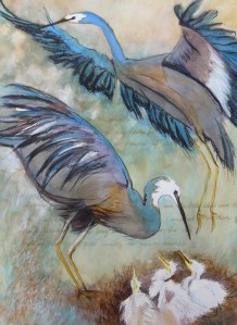 Blue cranes (illustrating poem ‘Poor poor country’) Watercolour, charcoal, gouache and pastel 96 x 70 framed $500