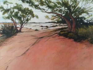 On the Eyre Highway WA Inktense and gouache Framed 42 x 52cm SOLD